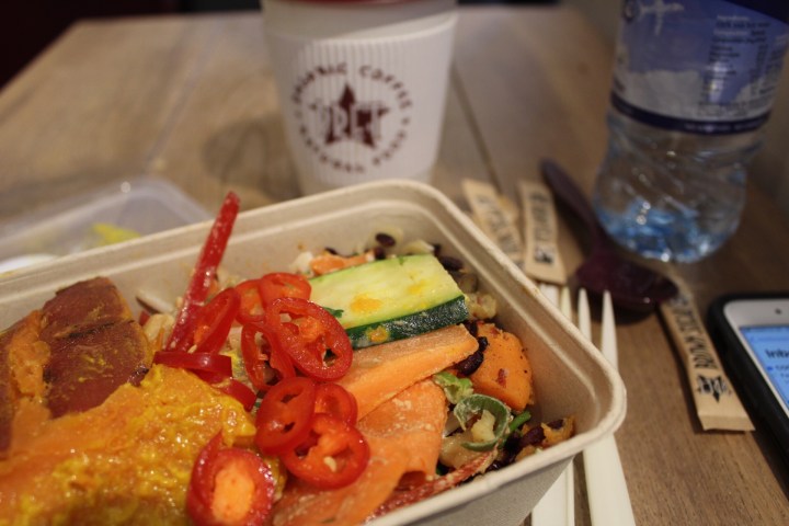 I arrived on Friday from Dublin and while I waited for my friend to arrive from Norfolk, I pottered around Oxford Street, picking up a few bargains along the way. For lunch, I headed to the amazing Deliciously Ella on Weighhouse Street. Seating was limited which resulted in me getting a takeaway salad and grabbing a coffee and a seat in Pret around the corner. From Deliciously Ella I got three salads – Sweet Potato with Turmeric Sauce, Raw Pad Thai and Wild Rice Salad, all topped with chilli flakes. I picked up some nut balls for a work friend too – I was on a mission to get them!