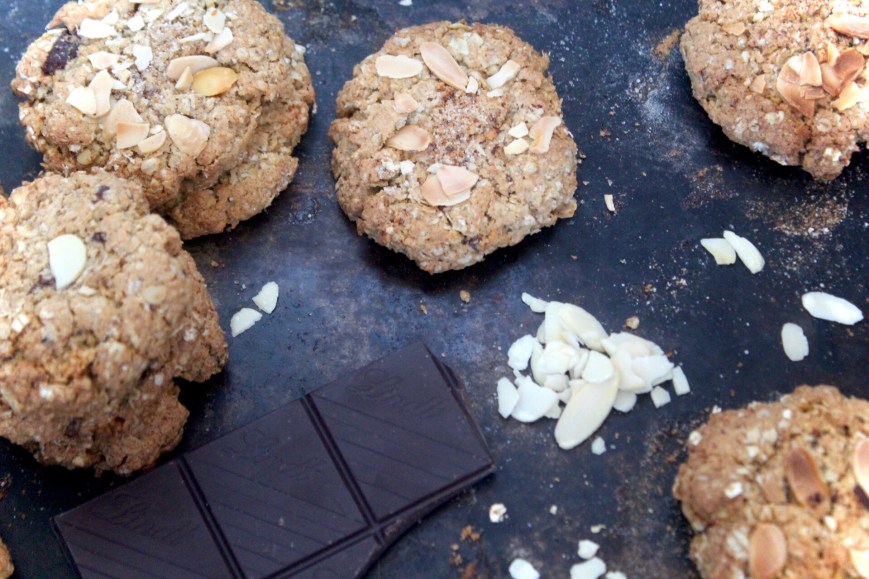 These almond and dark chocolate oaties are delicious. They have an autumnal vibe to them and they’re packed full of oats for a yummy nutty taste and texture.