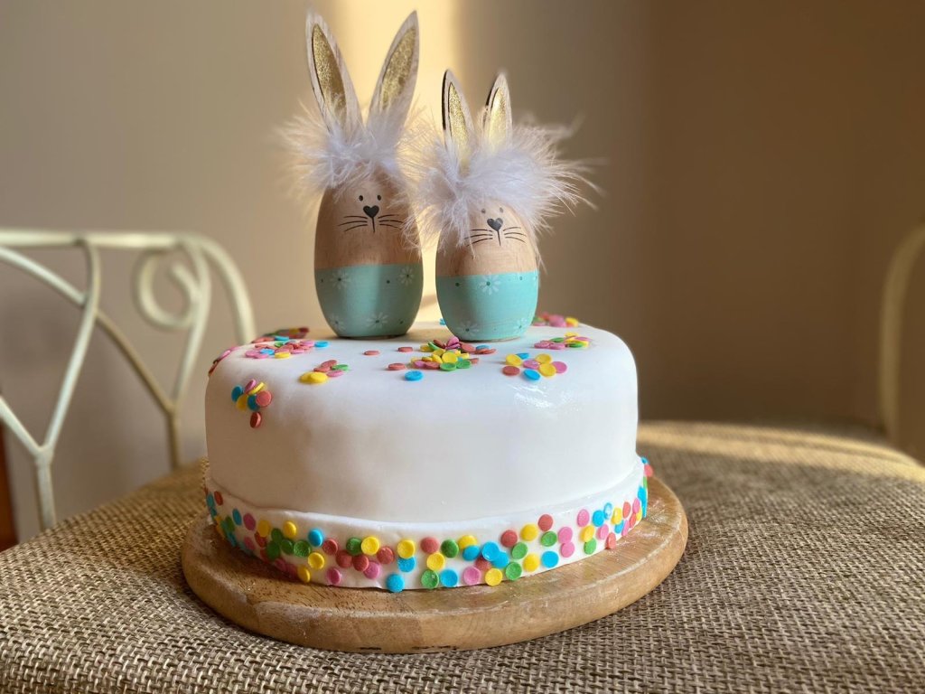 The Simnel cake is a traditional cake. Typically it was made by girls to give to their mothers on mother’s day. The traditional decoration is simply a marzipan topping, with one marzipan ball in the middle and eleven surrounding it to represent Jesus’ eleven faithful disciples. I tried the marzipan decoration one year but decided it’s more fun using Easter as an opportunity to get creative.