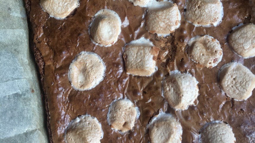 These s’mores brownies are one of my many bakes during COVID-19. In this case, I was inspired by a bag of marshmallows in the baking press that has passed their best before date. No big deal but felt it best to use them up.